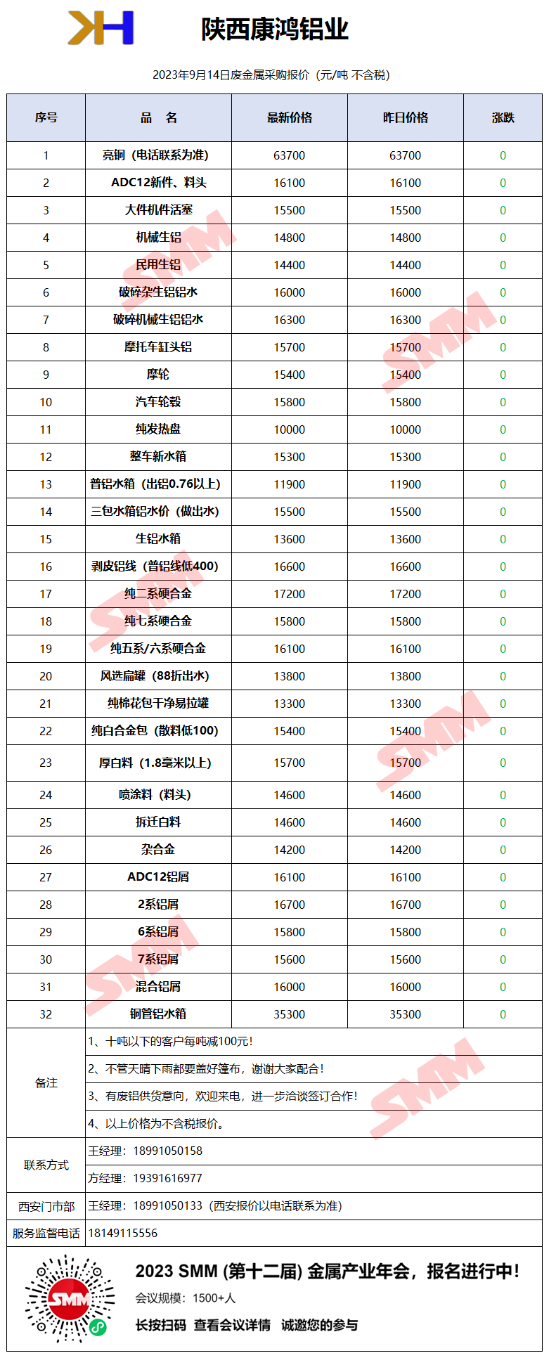 今日陕西康鸿铝业 废金属采购报价已更新,有货的朋友欢迎联系我们!