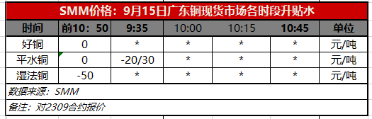 9月15日广东铜现货市场各时段升贴水(第一时段9:35)【SMM价格】