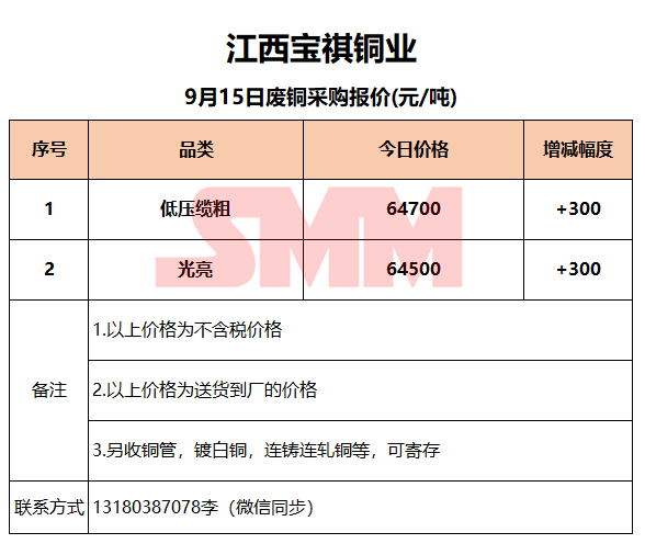 9月15日江西宝祺 废铜采购报价
