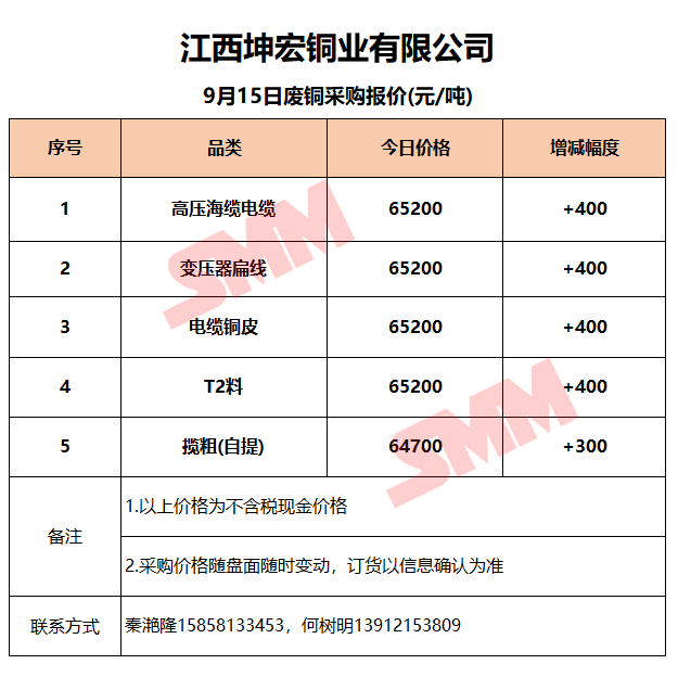 9月15日江西坤宏 废铜采购报价