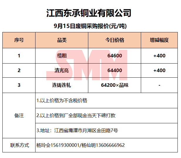 今日江西东承铜业/博升铜业 废铜采购报价已更新,有货的朋友欢迎联系我们!