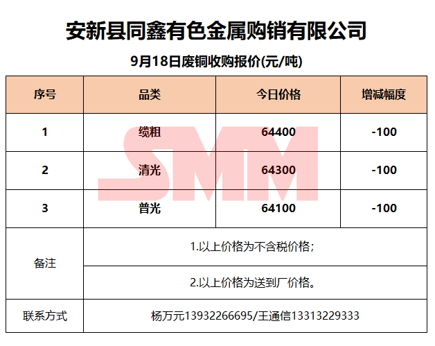 今日安新同鑫,废铜收购报价已更新,有货的朋友欢迎联系我们!