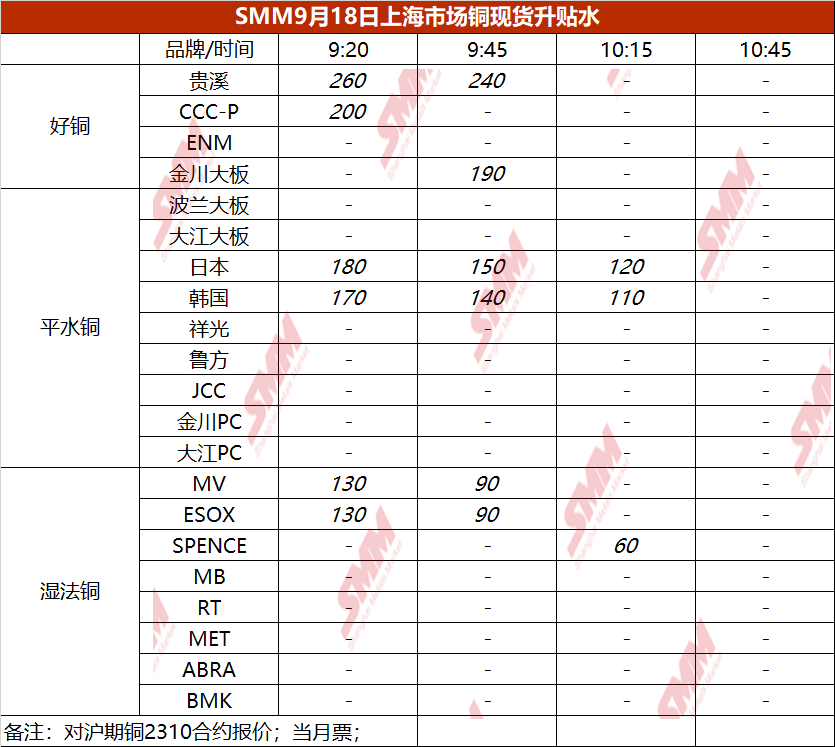9月18日上海市场铜现货升贴水(第三时段)【SMM价格】