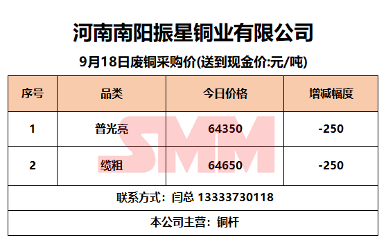 今日南阳振星,废铜采购报价已更新,有货的朋友欢迎联系我们!