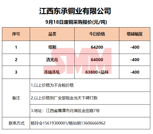 9月18日江西东承 废铜采购报价