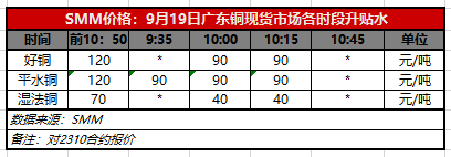 9月19日广东铜现货市场各时段升贴水(第三时段10:15)【SMM价格】
