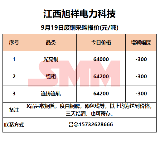 今日江西旭祥,废铜采购报价已更新,有货的朋友欢迎联系我们!