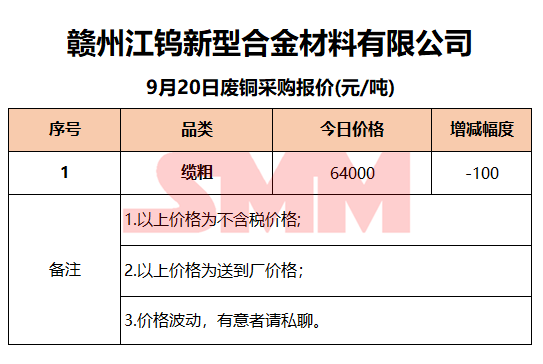 9月20日赣州江钨 废铜采购报价