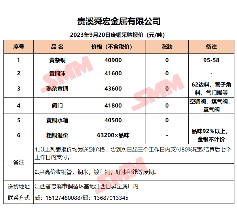 今日贵溪舜宏金属有限公司 ,废铜采购报价已更新,有货的朋友欢迎联系我们!