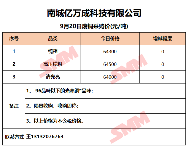9月20日江西亿万成 废铜采购报价