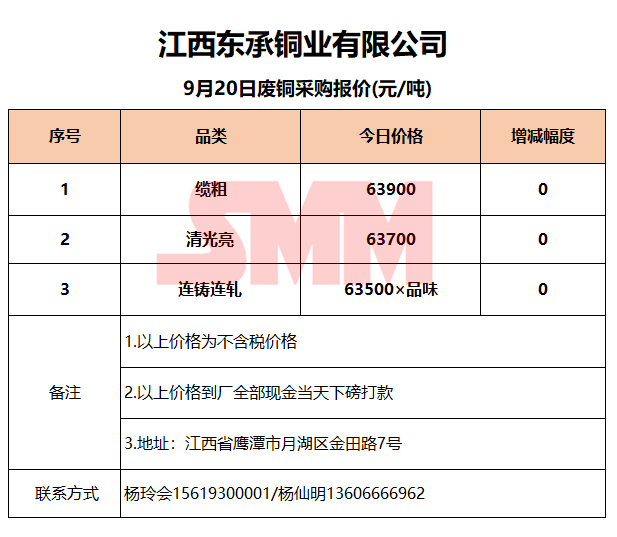 今日江西东承铜业/博升铜业 废铜采购报价已更新,有货的朋友欢迎联系我们!