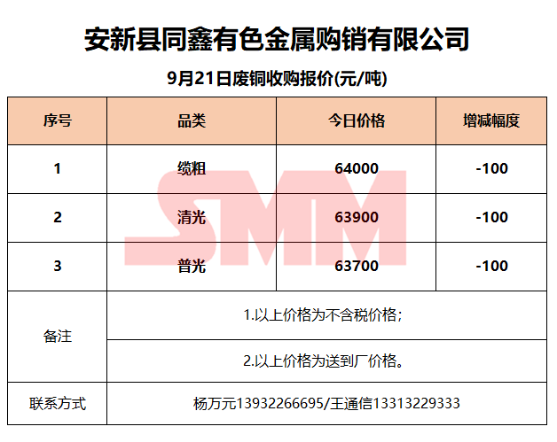 今日安新同鑫,废铜收购报价已更新,有货的朋友欢迎联系我们!