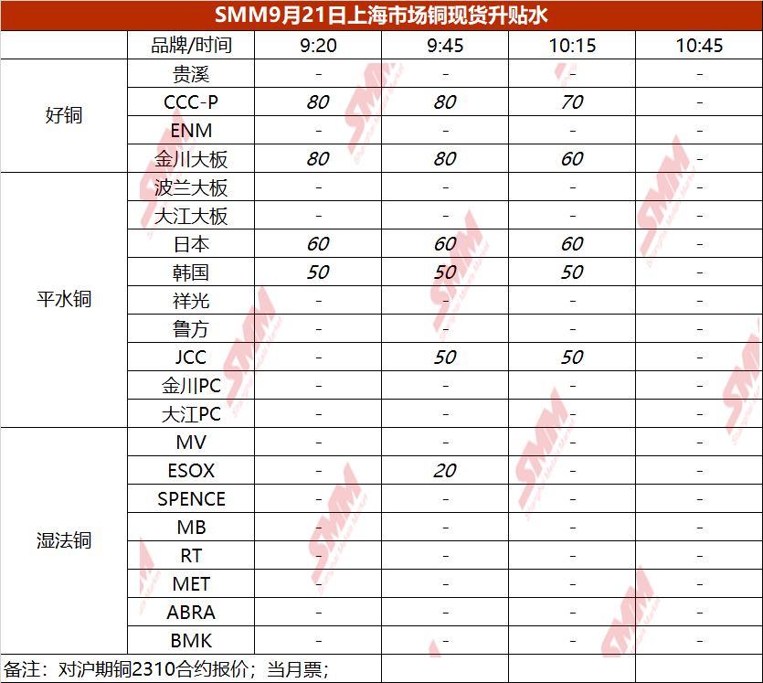 9月21日上海市场铜现货升贴水(第三时段)【SMM价格】