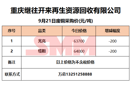 9月21日重庆继往开来 废铜采购报价