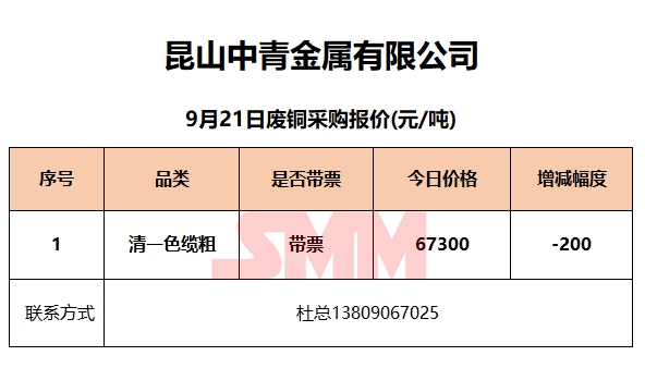 今日昆山中青金属 ,废铜采购报价已更新,有货的朋友欢迎联系我们!