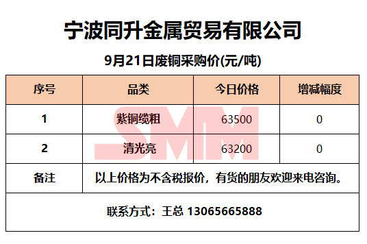 今日宁波同升金属,废铜采购报价已更新,有货的朋友欢迎联系我们!