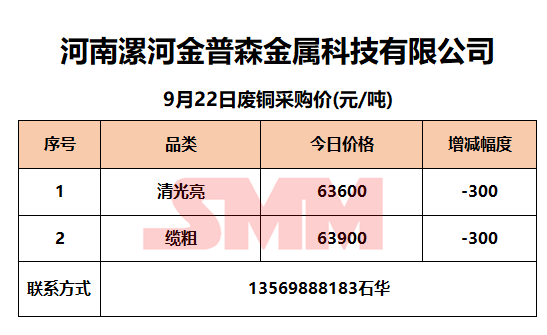 9月22日河南金普森 废铜采购报价