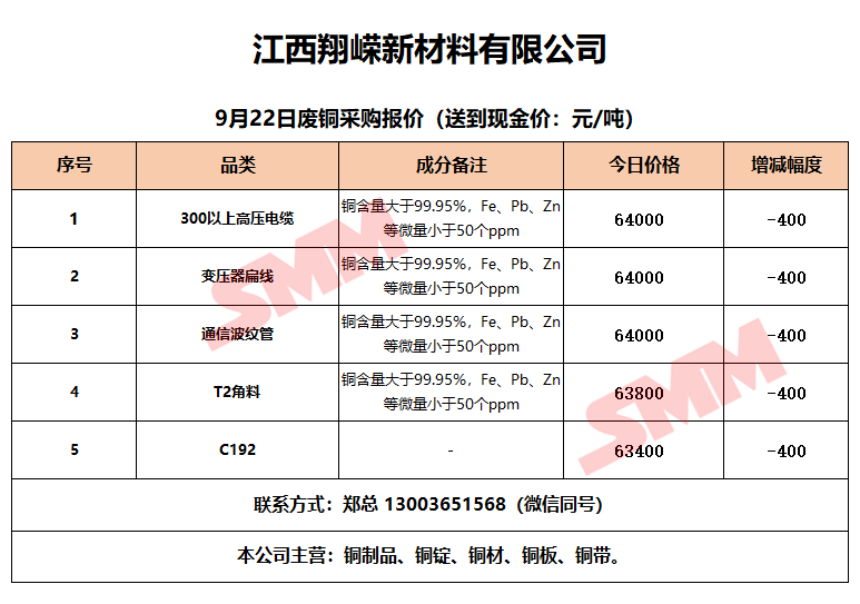 今日江西翔嵘新材料,废铜采购报价已更新,有货的朋友欢迎联系我们!