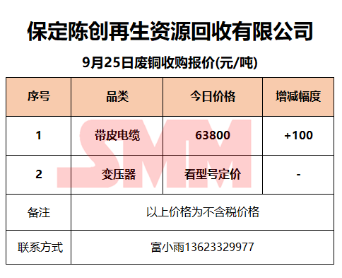 9月25日保定陈创 废金属收购报价