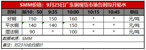 9月25日广东铜现货市场各时段升贴水(第二时段10:00)【SMM价格】