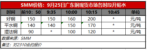 9月25日广东铜现货市场各时段升贴水(第三时段10:15)【SMM价格】