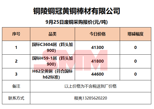9月25日铜陵铜冠 废铜采购报价