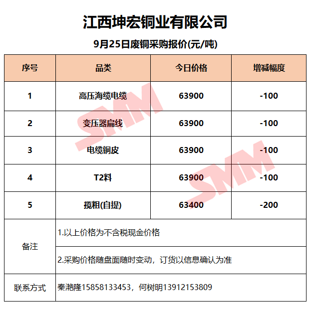 今日江西坤宏,废铜采购报价已更新,有货的朋友欢迎联系我们!
