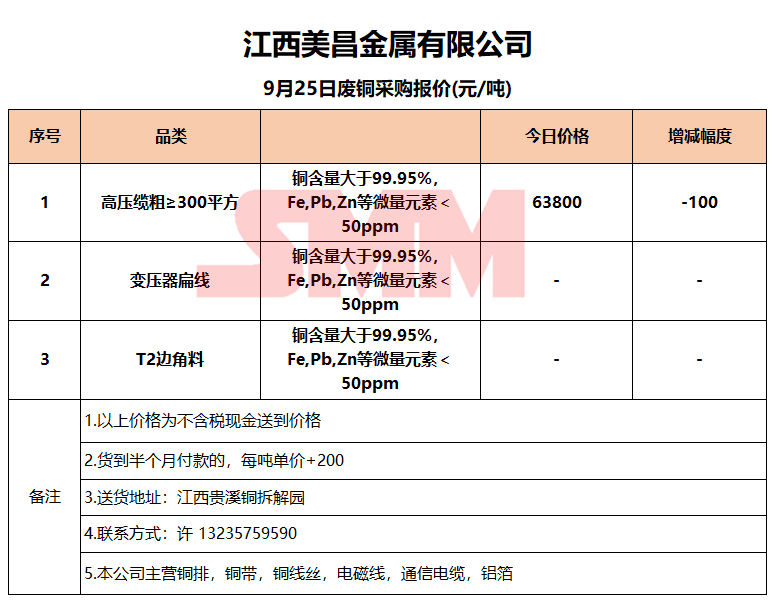 9月25日江西美昌 废铜采购报价