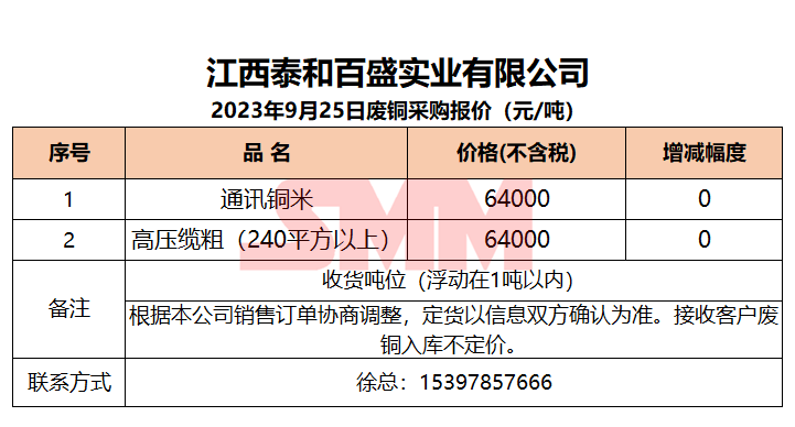 9月25日江西泰和 废铜采购报价