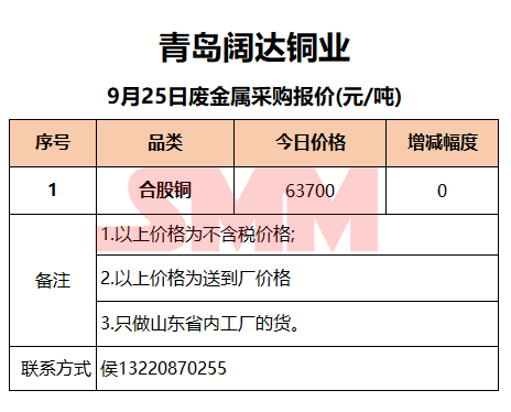 今日青岛阔达铜业 ,废金属采购报价已更新,有货的朋友欢迎联系我们!