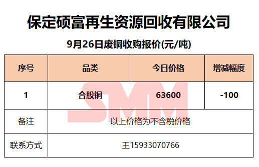 今日保定硕富 ,废铜收购报价已更新,有货的朋友欢迎联系我们!