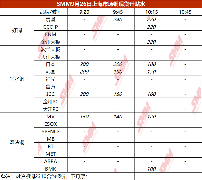 9月26日上海市场铜现货升贴水(第三时段)【SMM价格】