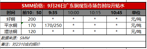 9月26日广东铜现货市场各时段升贴水(第一时段9:30)【SMM价格】