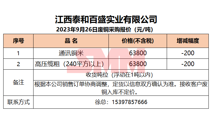 今日江西泰和百盛实业 ,废铜采购报价已更新,有货的朋友欢迎联系我们!