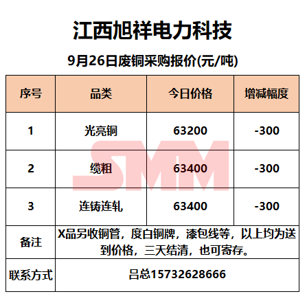 9月26日江西旭祥 废铜采购报价