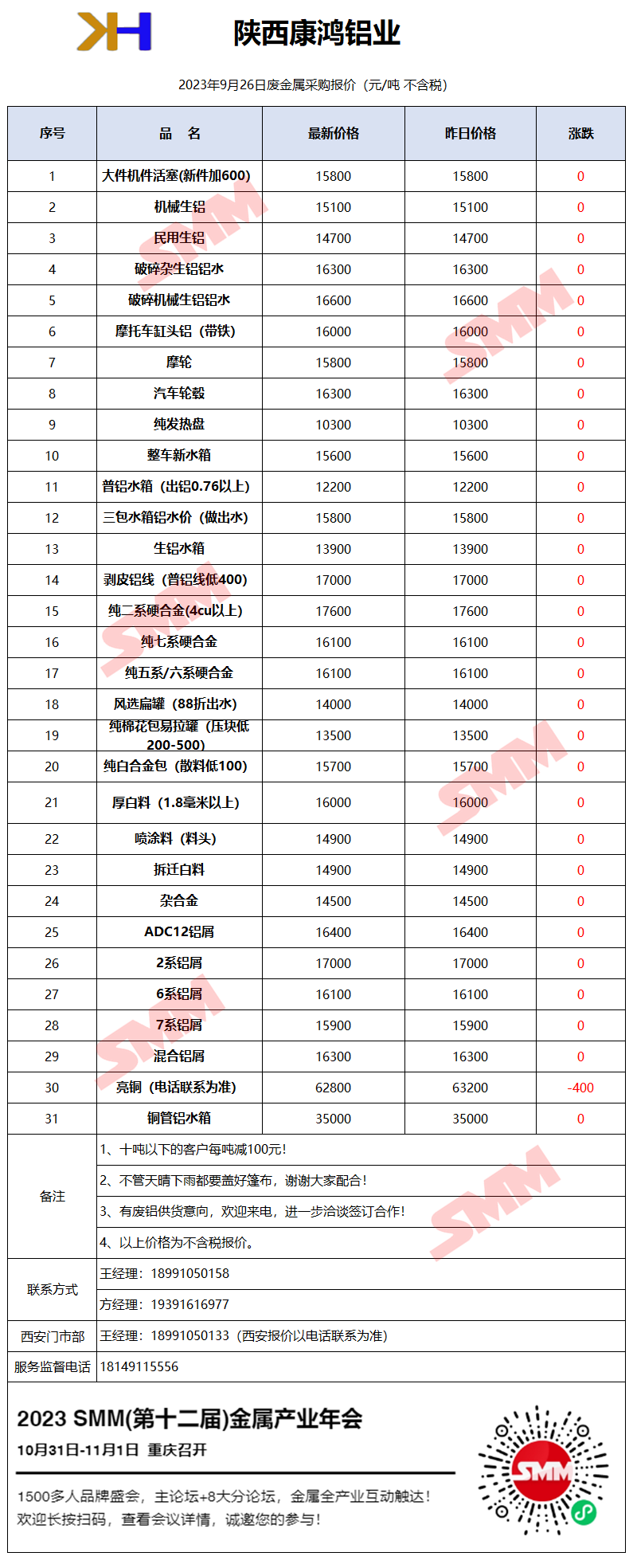 今日陕西康鸿铝业 废金属采购报价已更新,有货的朋友欢迎联系我们!