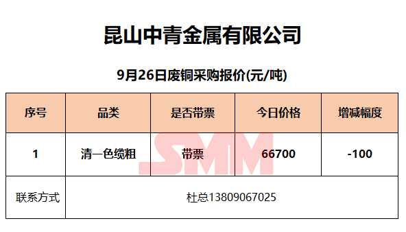 今日昆山中青金属 ,废铜采购报价已更新,有货的朋友欢迎联系我们!