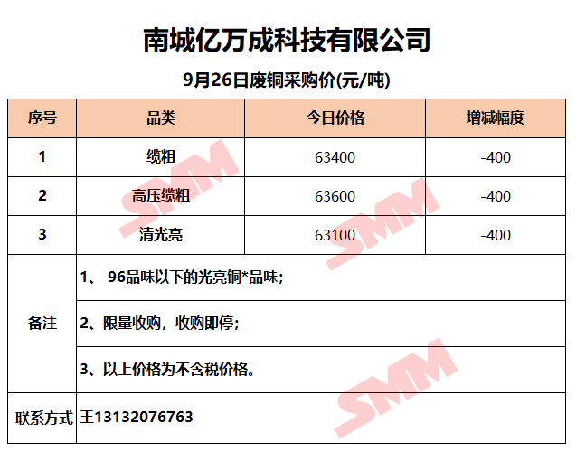 今日江西亿万成 废铜采购报价已更新,有货的朋友欢迎联系我们!