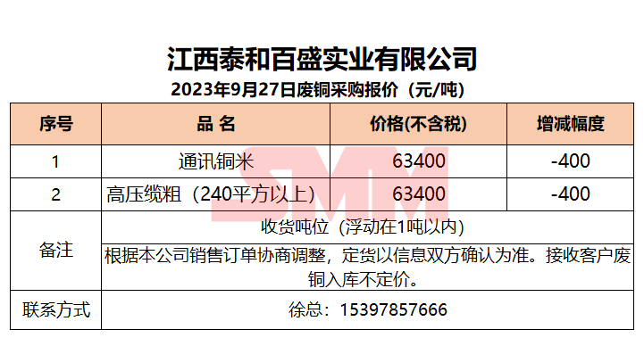 今日江西泰和百盛实业 ,废铜采购报价已更新,有货的朋友欢迎联系我们!