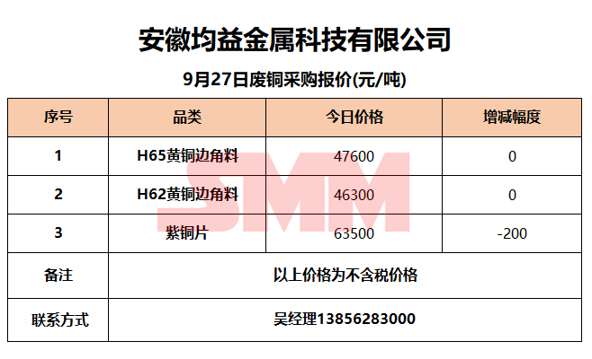 今日安徽均益,废铜采购报价已更新,有货的朋友欢迎联系我们!