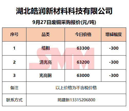9月27日湖北皓润 废铜采购报价