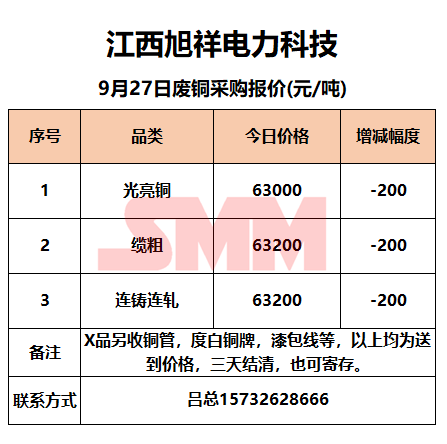 今日江西旭祥,废铜采购报价已更新,有货的朋友欢迎联系我们!