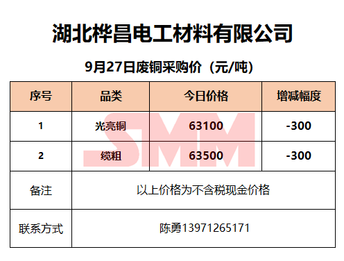 9月27日湖北桦昌 废铜采购报价