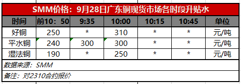 9月28日广东铜现货市场各时段升贴水(第二时段10:00)【SMM价格】