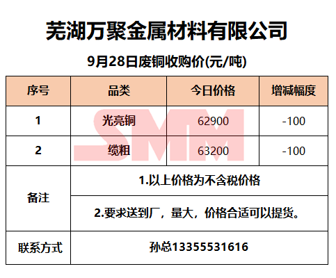 今日芜湖万聚金属,废铜收购报价已更新,有货的朋友欢迎联系我们!