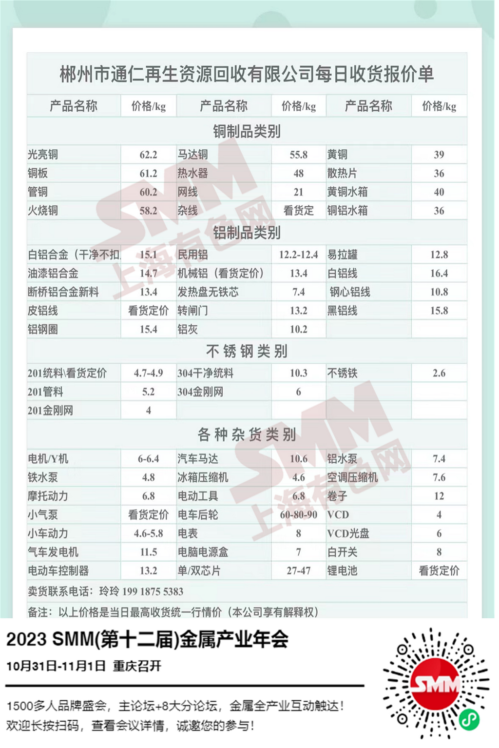 今日郴州市通仁再生资源回收有限公司 废金属收购报价已更新,有货的朋友欢迎联系我们!