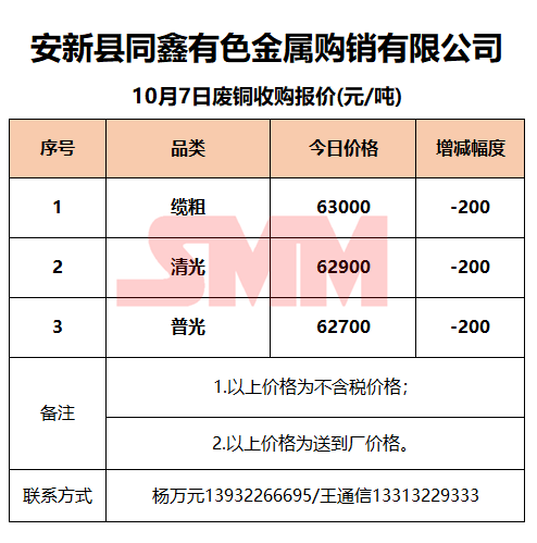 今日安新同鑫,废铜收购报价已更新,有货的朋友欢迎联系我们!