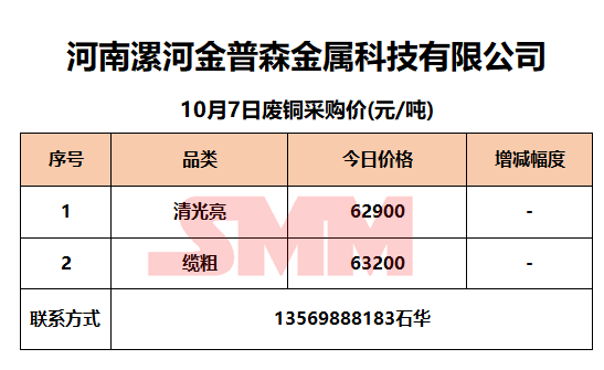 今日河南金普森 废铜采购报价已更新,有货的朋友欢迎联系我们!