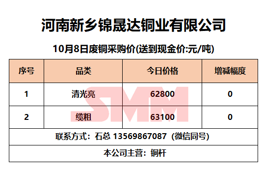 今日河南锦晟达,废铜采购报价已更新,有货的朋友欢迎联系我们!