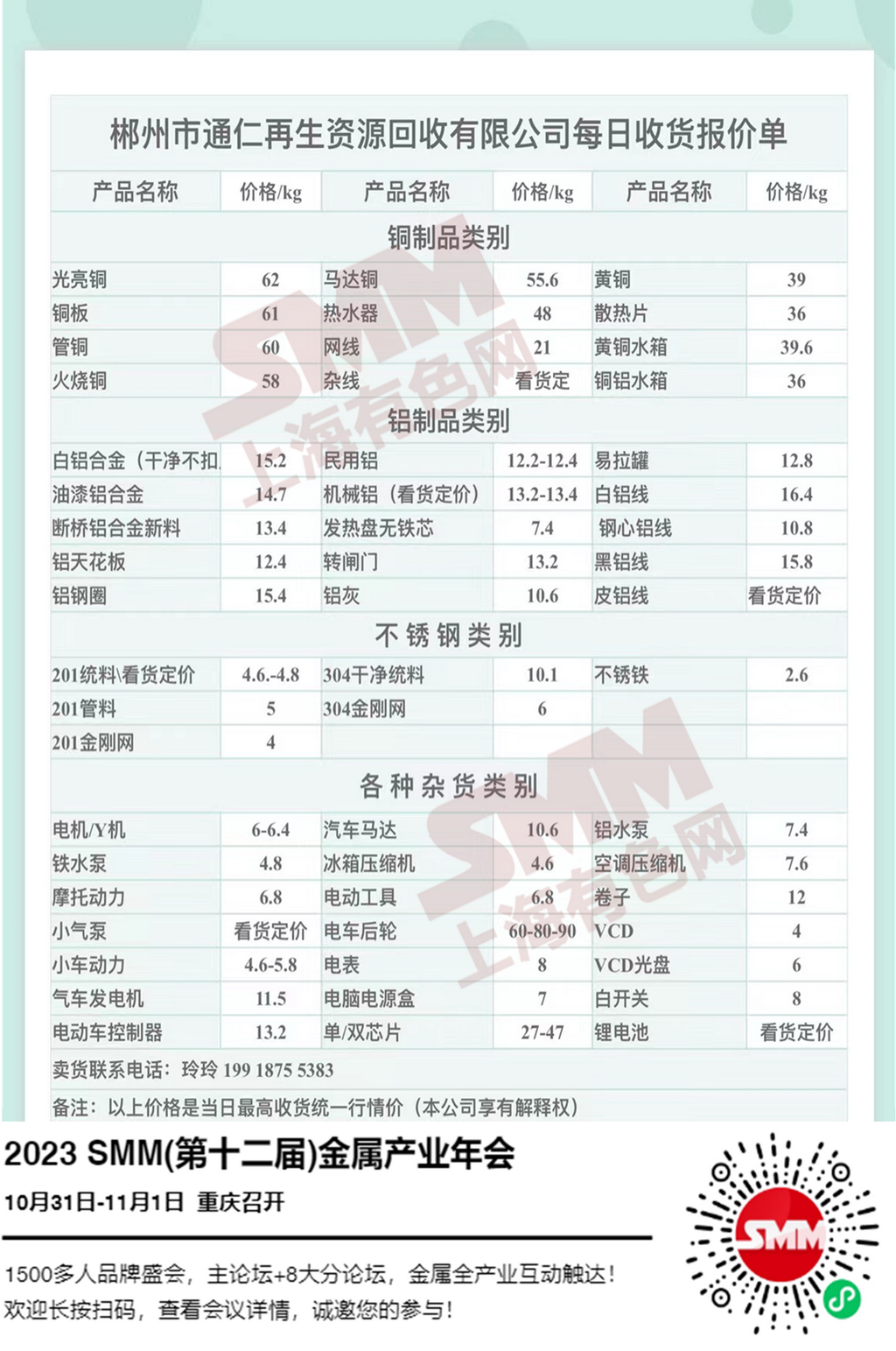 今日郴州市通仁再生资源回收有限公司 废金属收购报价已更新,有货的朋友欢迎联系我们!